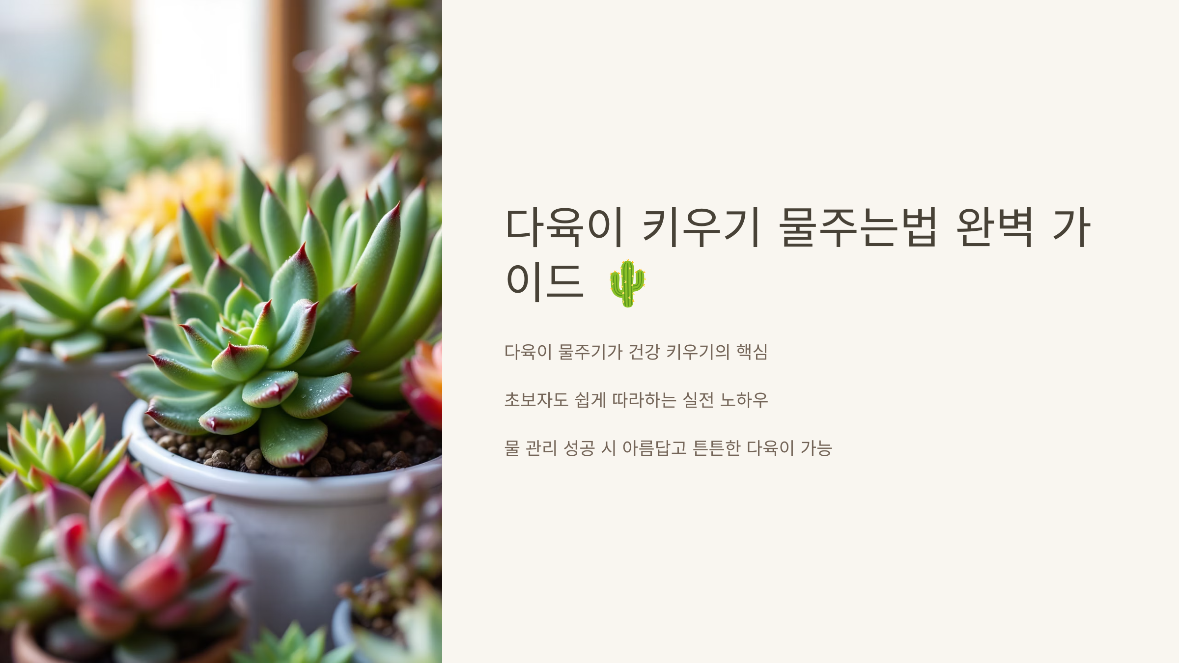 성공적인 다육이 키우기는 적절한 물 관리에서 시작됩니다. 다육식물은 건조한 환경에서도 잘 자라는 특성 때문에 관리가 쉽다고 알려져 있지만, 사실 올바른 다육이 물주는법만 알면 훨씬 더 건강하고 아름답게 키울 수 있답니다! 💦