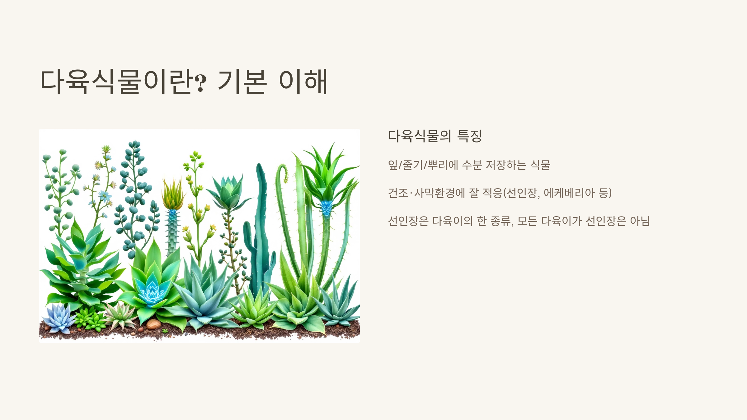 이 글이 여러분의 다육이 키우기 여정에 도움이 되길 바랍니다. 건강하고 아름다운 다육이와 함께하는 일상을 즐기세요! 🌿