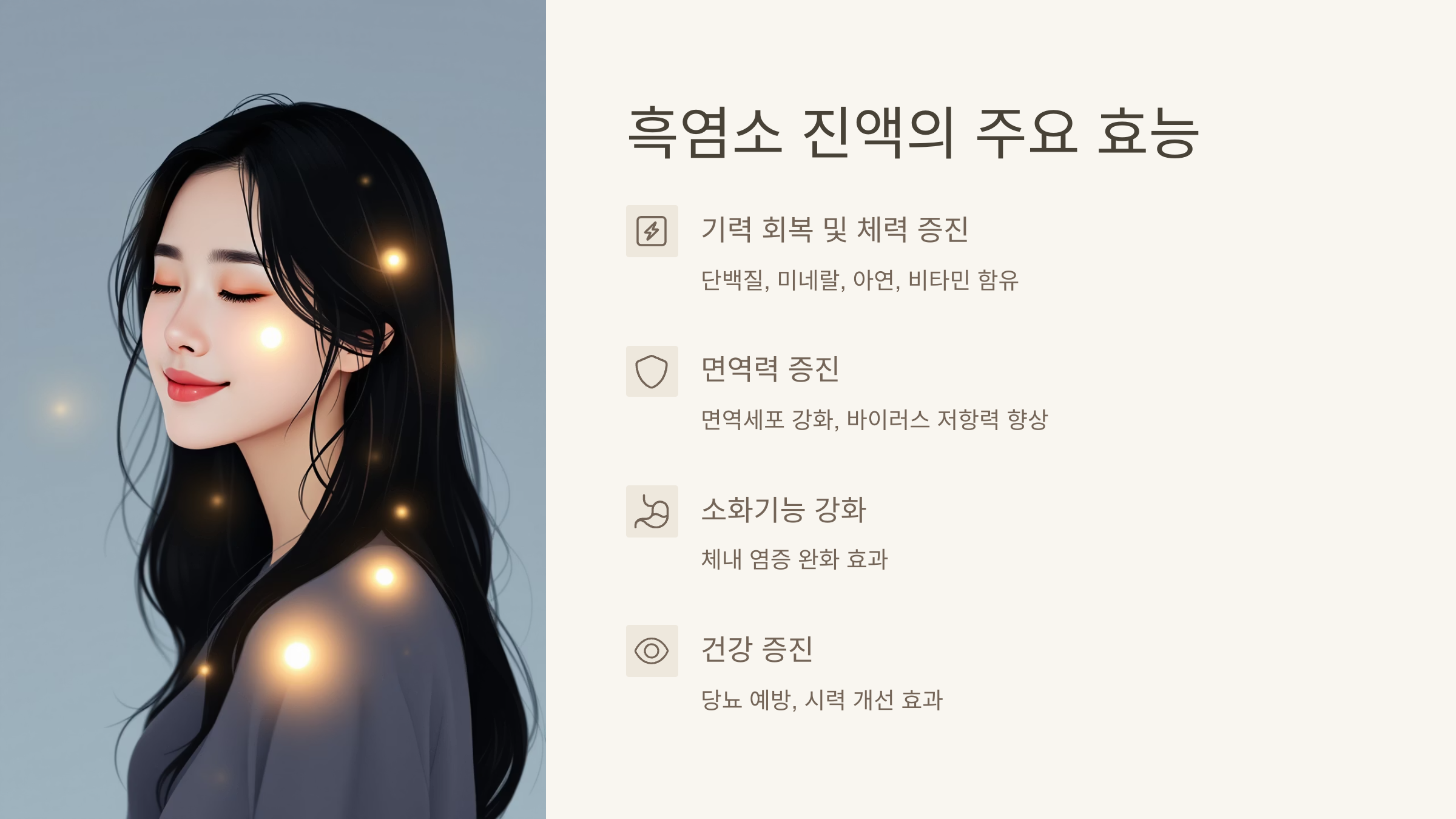 아무리 좋은 성분이 가득한 흑염소 진액이라도 우리 몸에 제대로 흡수되지 않으면 소용이 없겠죠? 흑염소 진액은 일반 식품과 달리 농축된 영양소를 담고 있기 때문에, 언제, 어떻게, 얼마나 먹는지가 흡수율과 효과에 직접적인 영향을 미칩니다.